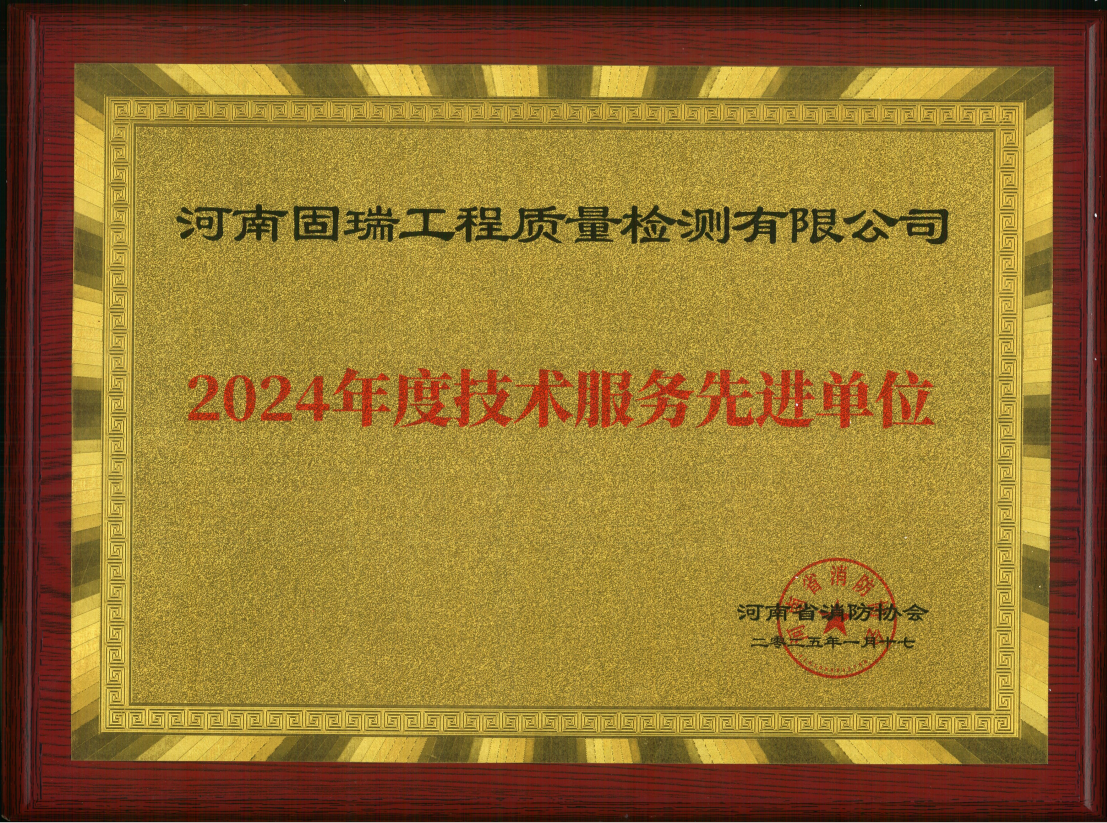 熱烈祝賀河南固瑞工程質(zhì)量檢測(cè)有限公司榮獲河南省消防協(xié)會(huì)2024年度技術(shù)服務(wù)先進(jìn)單位!!!